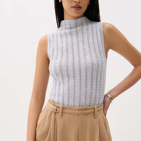 Chất Lượng Cao Của Phụ Nữ Scoop Cổ Dệt Kim Tank Top Thoáng Khí Giản Dị Không Ngủ Outwear Với Sexy Đứng Cổ Áo