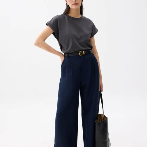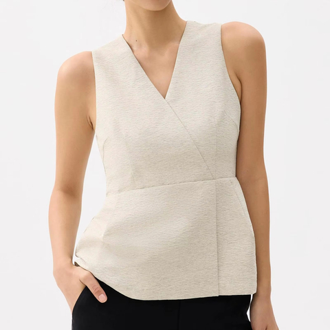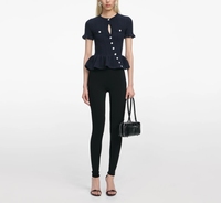 Hải Quân sườn đan peplum đầu W/lỗ khóa cut-out & nút bất đối xứng | chứng nhận OEKO-TEX | PK-ASY24 mẫu