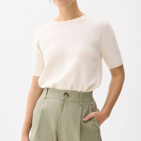 Của phụ nữ giản dị Ngắn Tay Áo dệt kim hàng đầu đơn giản đồng bằng T-Shirt thiết kế cho mùa hè thoáng khí và mỏng Độ dày